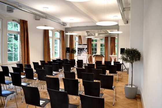 Dieser Tagungsraum im Obergeschoss bietet Ihnen über 66 qm Fläche bei einer Deckenhöhe von 3,40 m. Er verfügt über Tageslicht und eine optimale Akustik.